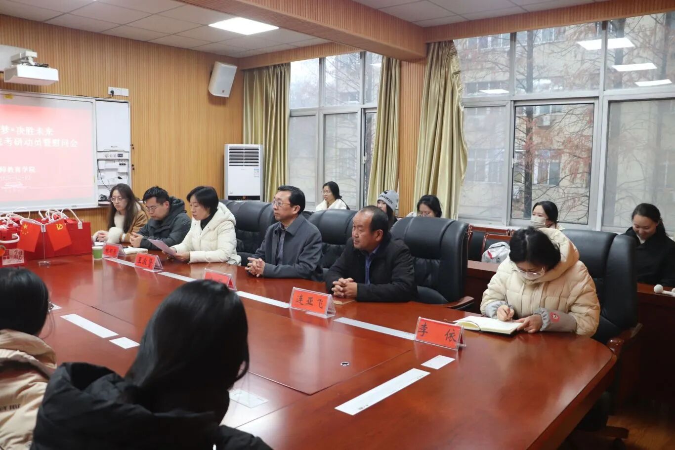 此次考研暖心慰问会的举办,既是一次鼓舞士气、凝聚人心的“集结号”,更是一段逐梦征程中暖心护航的“加油站”。学院的深切关怀、师长的殷切嘱托汇聚成照亮研途的点点星光。带着这份温暖与力量,考研学子将以更坚定的信念、更饱满的热情、更昂扬的姿态投入到最后的冲刺中,不负韶华、不负期许。教师教育学院将始终与学子们同心同行,静候大家凯旋佳音,期待学子们在春天收获成功的喜悦,在青春赛道上书写精彩华章!